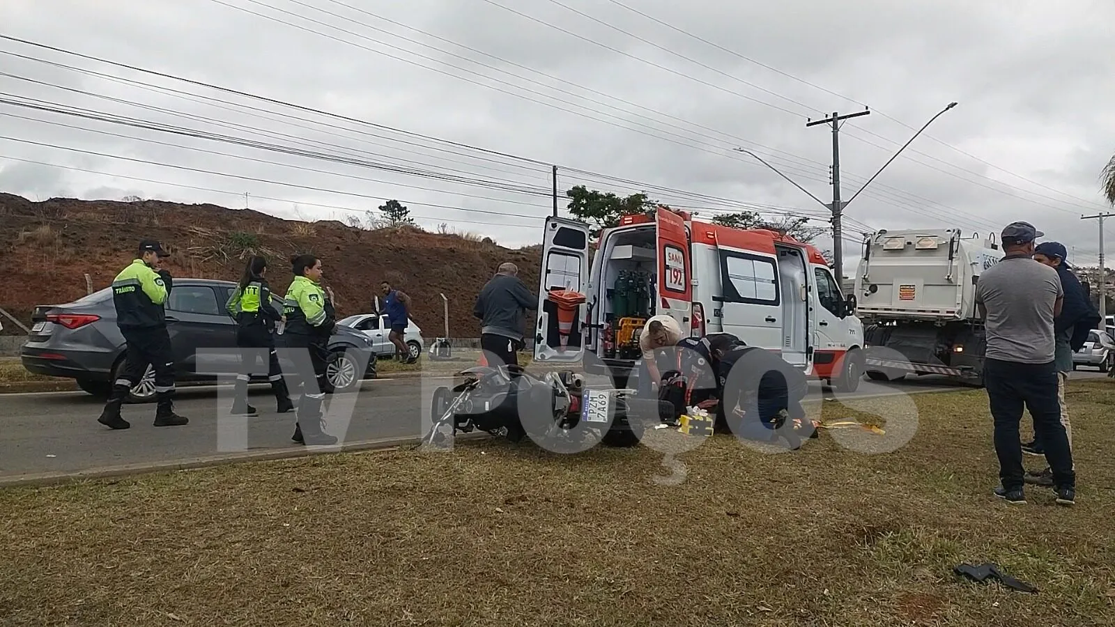 Segundo informações apuradas pela equipe da TV Poços no local, a mulher pilotava uma motocicleta quando colidiu com o paralama de um caminhão da Prefeitura, que realizava serviços de limpeza na via no momento do acidente. De acordo com relatos, ela teria sofrido fraturas graves na região do tórax.