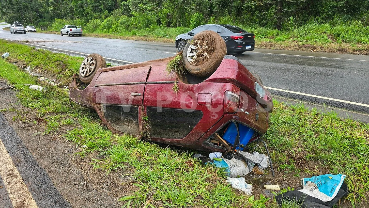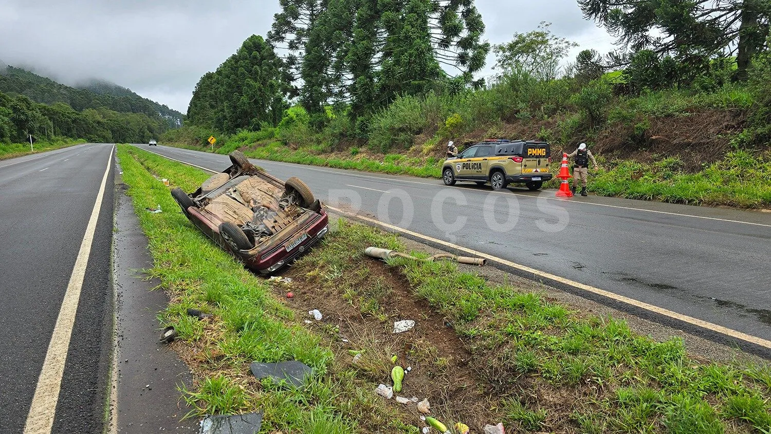 De acordo com as informações apuradas no local, um veículo Volkswagen Gol teria perdido o controle da direção, invadido o canteiro central da rodovia e capotado. No carro estava apenas o motorista.