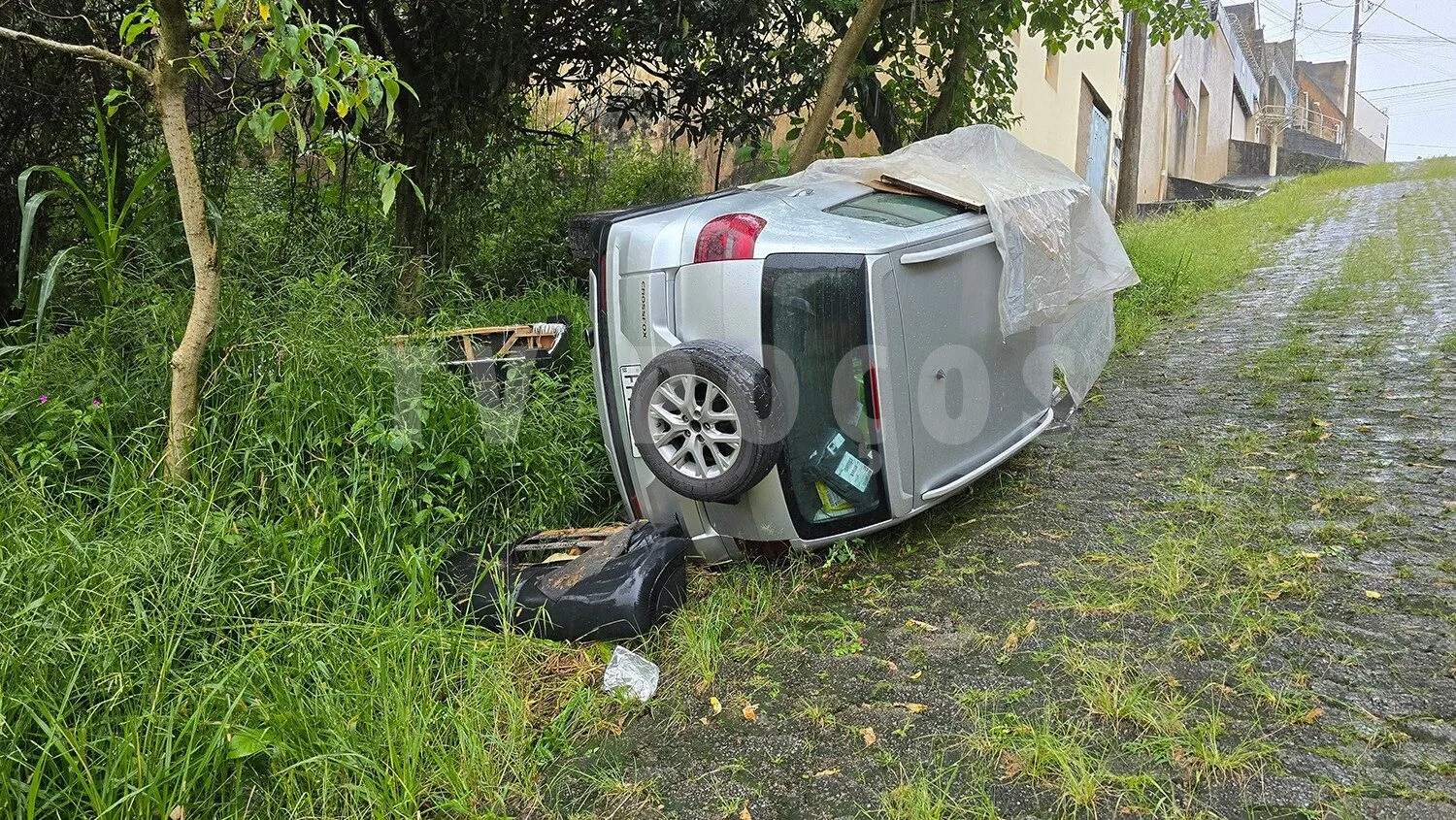 De acordo com as informações apuradas, um Volkswagen CrossFox perdeu o controle ao tentar subir a via, que é bastante íngreme. O veículo voltou de ré, colidiu e tombou.