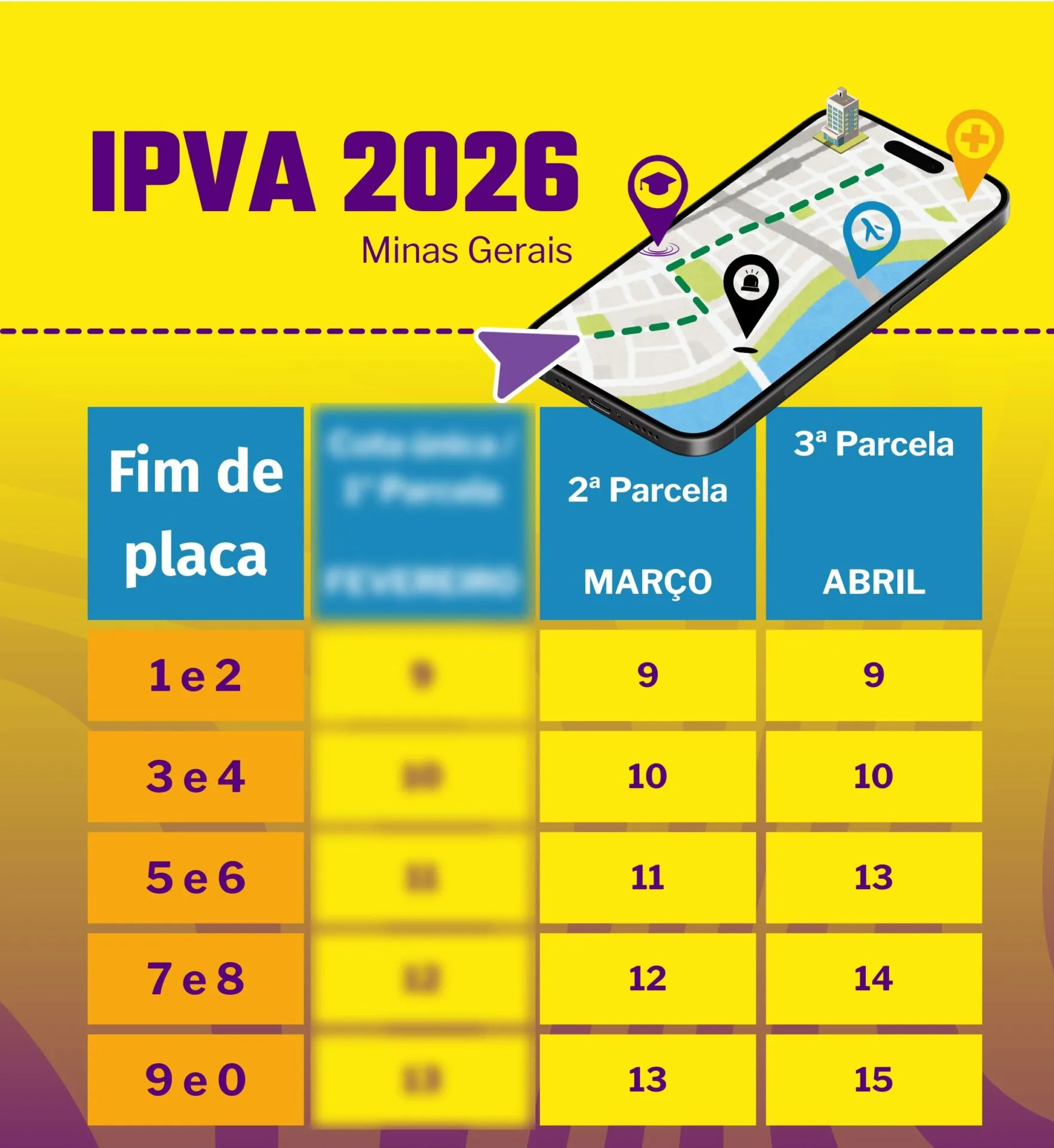 A segunda parcela do IPVA 2026 em Minas Gerais vence entre 9 e 13 de março, conforme o final da placa do veículo. O calendário do imposto segue uma escala definida pelo governo estadual, com datas diferentes para cada grupo de placas.